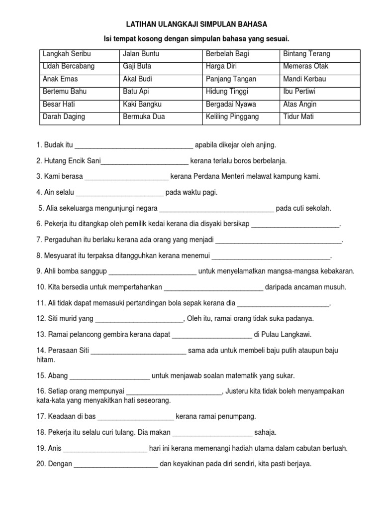 Latihan Ulangkaji Simpulan Bahasa 1 Pdf